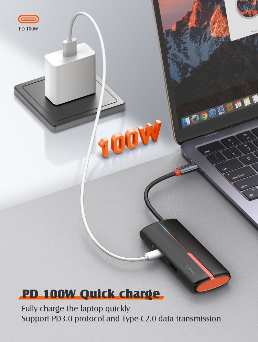 Μέσω της θύρας USB-C PD μπορείτε να φορτίσετε το laptop σας με απόδοση έως 100W ενώ μέσω της θύρας HDMI σας επιτρέπει την σύνδεση οθόνης με ανάλυση έως 4K.
