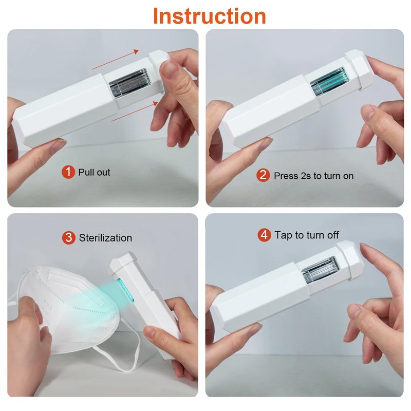 Φορητή συσκευή για την αποστείρωση επιφανειών και αντικειμένων σε ελάχιστο χρόνο. Εξοπλισμένη με UVC LED υπεριώδους ακτινοβολίας που εξοντώνει γρήγορα το 99,99% των μικροβίων και βακτηρίων. Εξοπλίζεται με επαναφορτιζόμενη μπαταρία 600mAh και λειτουργεί με ένα απλό πάτημα του πλήκτρου αφής. Με ιδιαίτερα μικρό μέγεθος για να το έχετε πάντα μαζί σας.