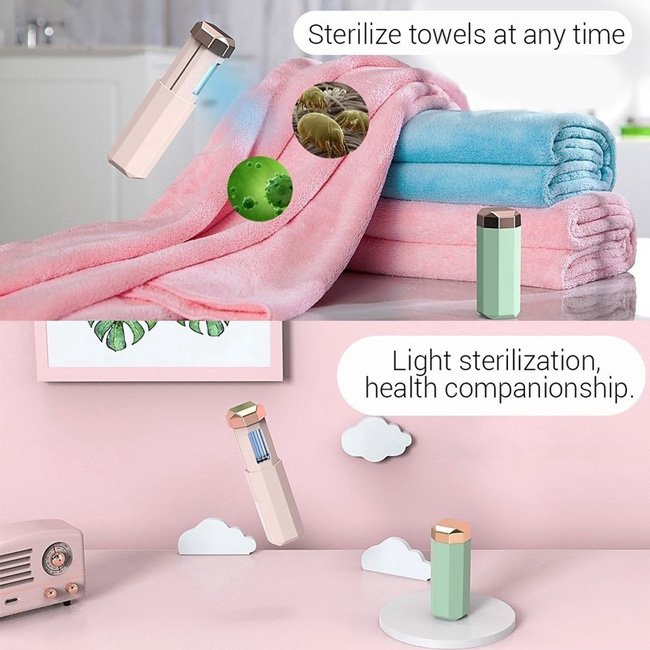 Φορητή συσκευή για την αποστείρωση επιφανειών και αντικειμένων σε ελάχιστο χρόνο. Εξοπλισμένη με UVC LED υπεριώδους ακτινοβολίας που εξοντώνει γρήγορα το 99,99% των μικροβίων και βακτηρίων. Εξοπλίζεται με επαναφορτιζόμενη μπαταρία 600mAh και λειτουργεί με ένα απλό πάτημα του πλήκτρου αφής. Με ιδιαίτερα μικρό μέγεθος για να το έχετε πάντα μαζί σας.