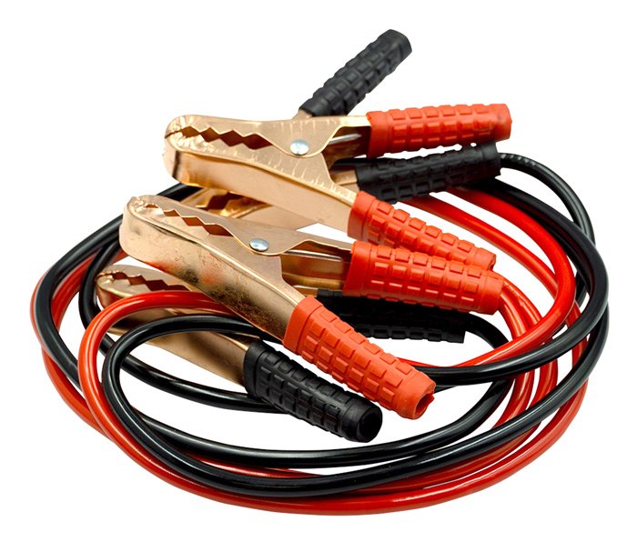 Ζεύγος καλωδίων, μαύρου και κόκκινου χρώματος, με μήκος 2m, ιδανικό για φόρτιση μπαταριών αυτοκινήτου με κινητήρα έως 1,500 cm3.