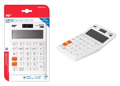 MP αριθμομηχανή PE032-01, ηλιακό & μπαταρίες, 12 ψηφία, λευκή