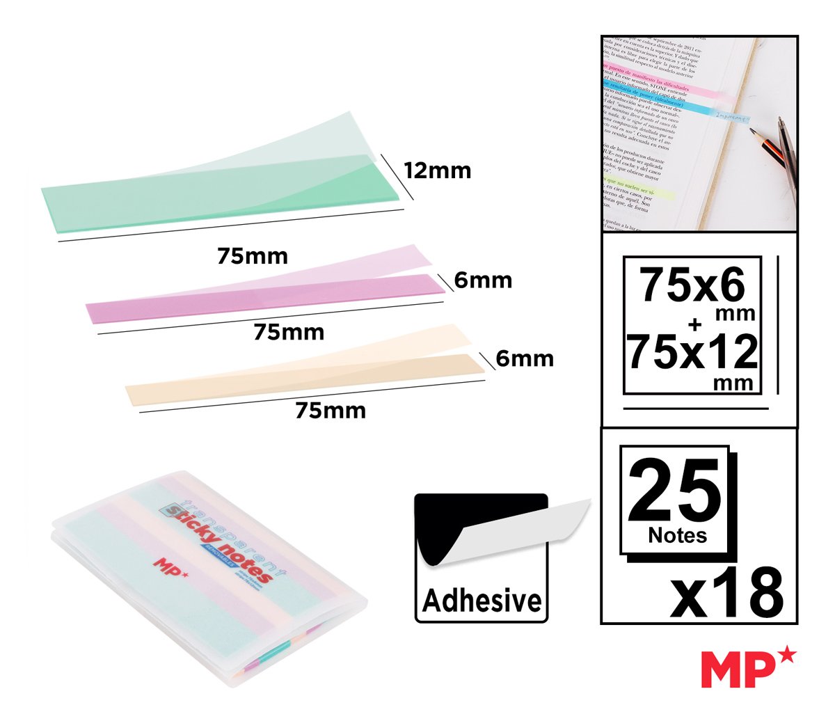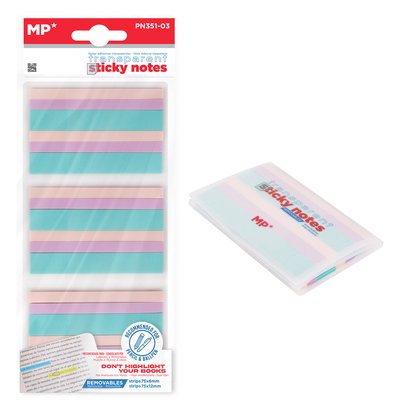 MP αυτοκόλλητα χαρτάκια σημειώσεων PN351-03, διάφανα, 75×12/6mm, 450τμχ