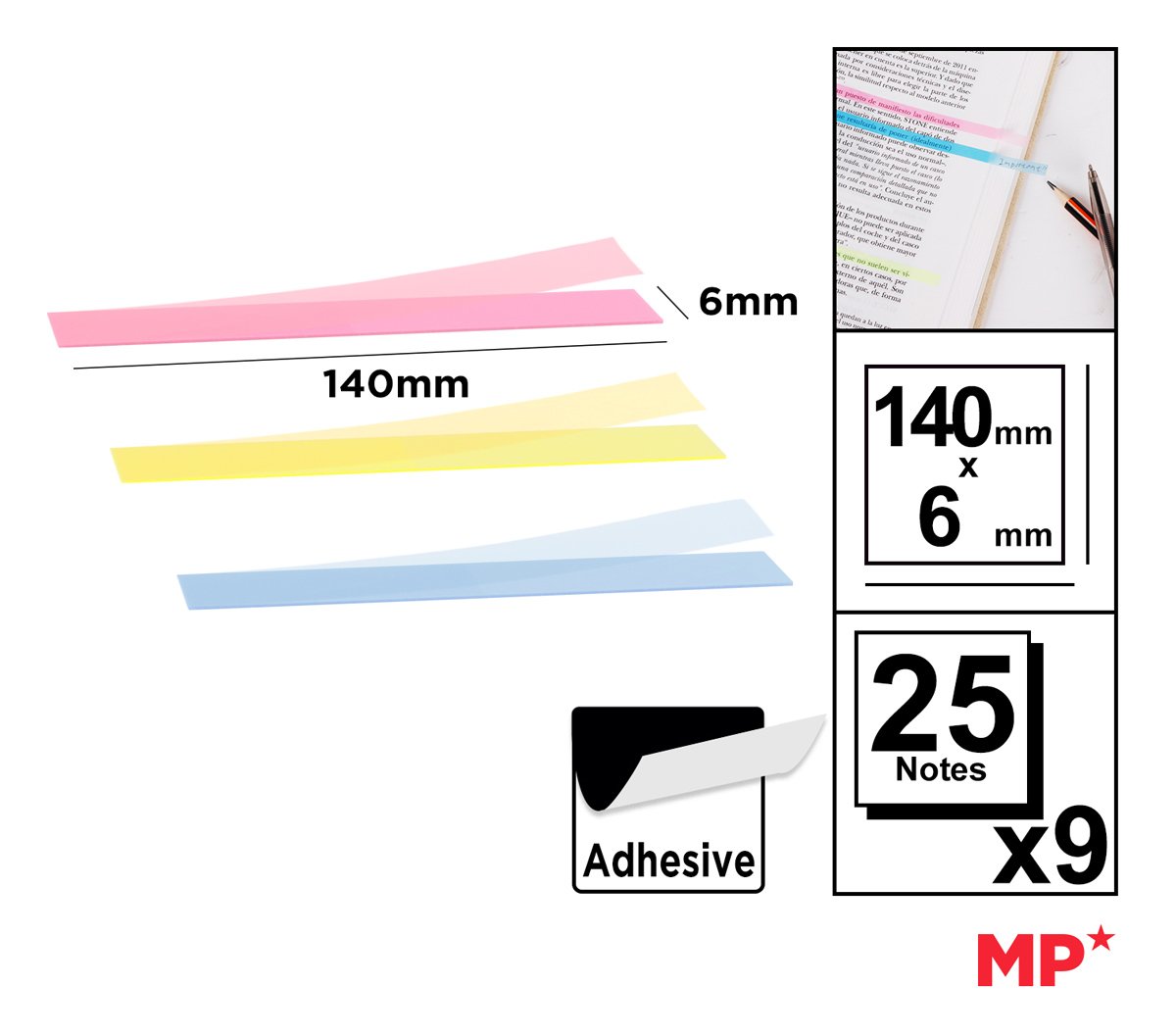 MP αυτοκόλλητα χαρτάκια σημειώσεων PN352-02, διάφανα, 140x6mm, 225τμχ