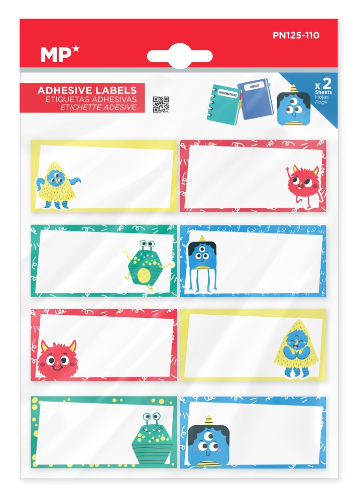 MP αυτοκόλλητες ετικέτες τετραδίων PN125-110, 65x32mm, 8 σχέδια, 16τμχ