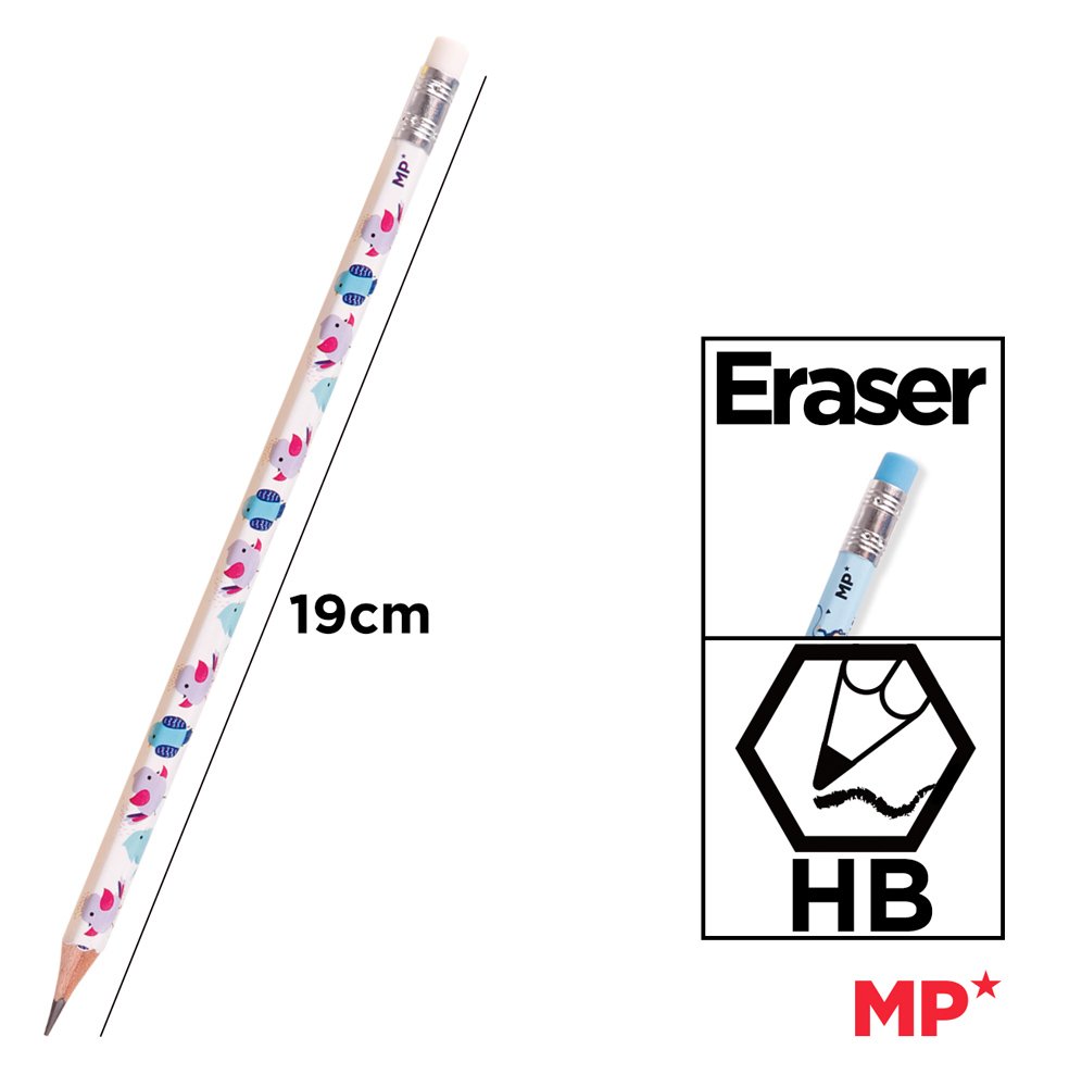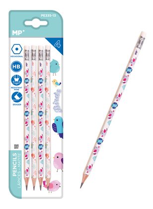 MP ξύλινα μολύβια Birds PE335-13 με γόμα, εξάγωνα, HB, 4τμχ