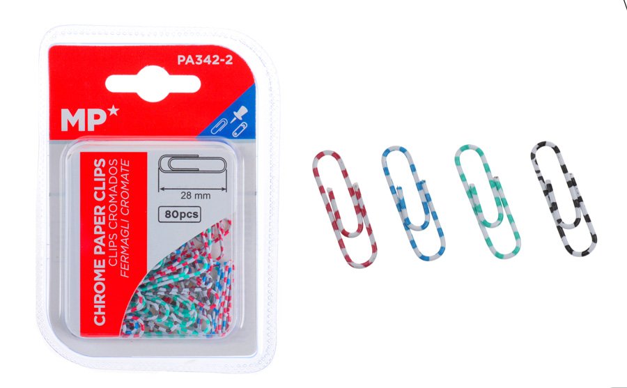 MP πλαστικοποιημένοι συνδετήρες PA342-2, 28mm, 80τμχ, χρωματιστοί