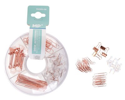 MP σετ γραφείου PA360-06 με συνδετήρες, κλιπ & πινέζες, ροζ χρυσό