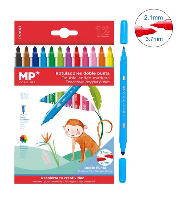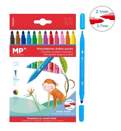 MP σετ χρωματιστών μαρκαδόρων με διπλή μύτη 2.1 & 3.7mm PP861, 12τμχ