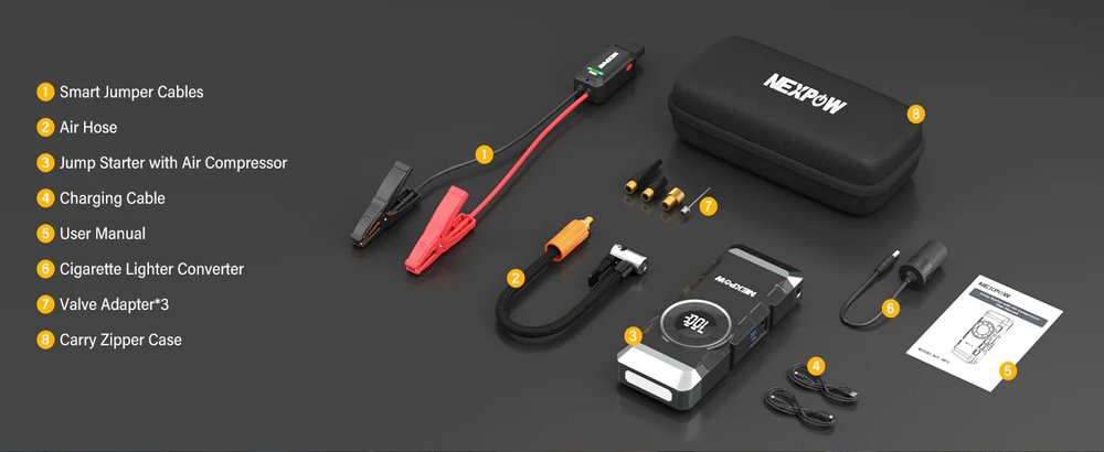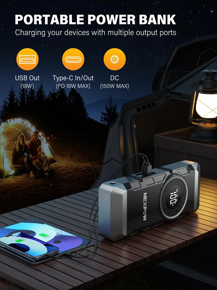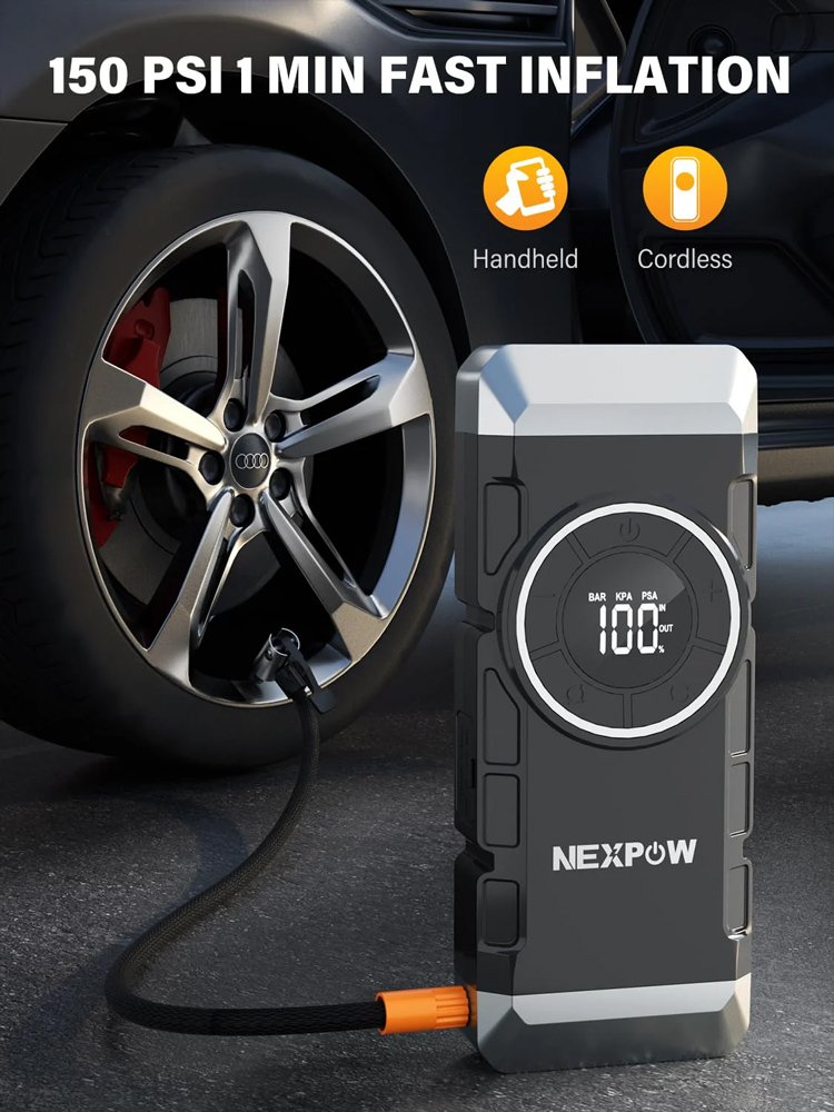 NEXPOW εκκινητής μπαταρίας & συμπιεστής αέρος NP2, 12V/3000A, 150PSI, 12000mAh