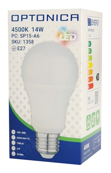 OPTONICA LED λάμπα A60 1358, 14W, 4500K, E27, 1380lm