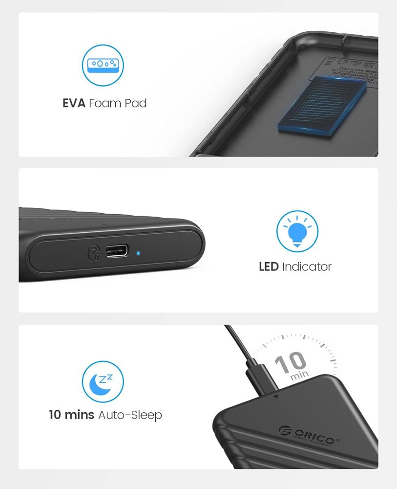 Η θήκη της ORICO επιτρέπει την σύνδεση ενός 2.5″ SATA HDD ή SSD με έναν επιτραπέζιο ή φορητό υπολογιστή μέσω θύρας USB-C.