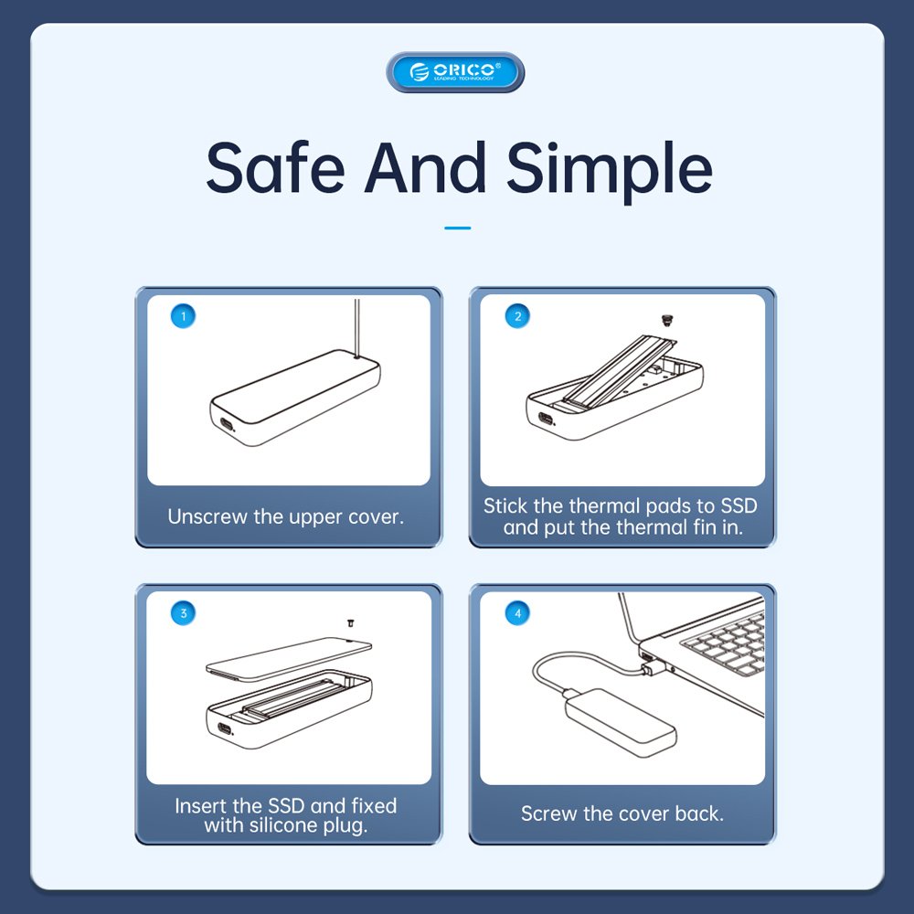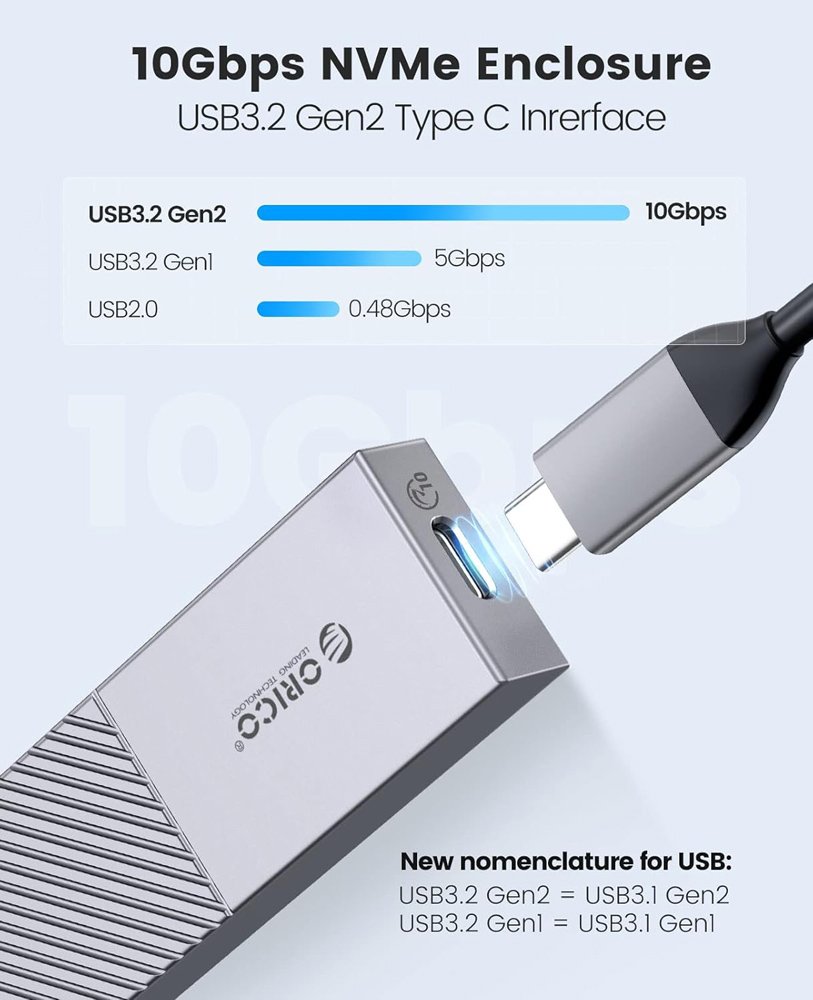 Η θήκη της ORICO επιτρέπει την σύνδεση ενός M.2 NVME SSD με έναν επιτραπέζιο ή φορητό υπολογιστή μέσω θύρας USB ή USB-C.
