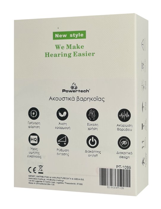 Ακουστικό βαρηκοΐας Powertech, κατάλληλο για ενηλίκους που αντιμετωπίζουν πρόβλημα με την ακοή τους. Διαθέτει ήχο υψηλής ευκρίνειας, τεχνολογία μείωσης θορύβου και άριστη εφαρμογή στο αυτί.