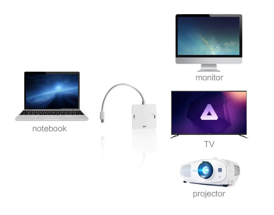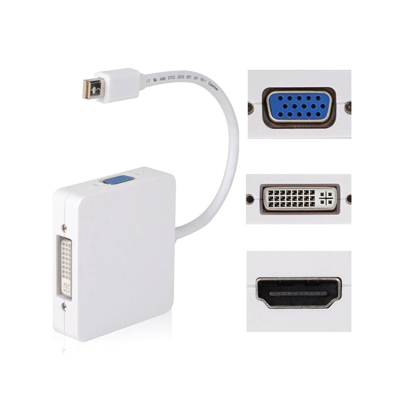POWERTECH αντάπτορας mini DisplayPort σε HDMI/DVI/VGA CAB-DP016, λευκός