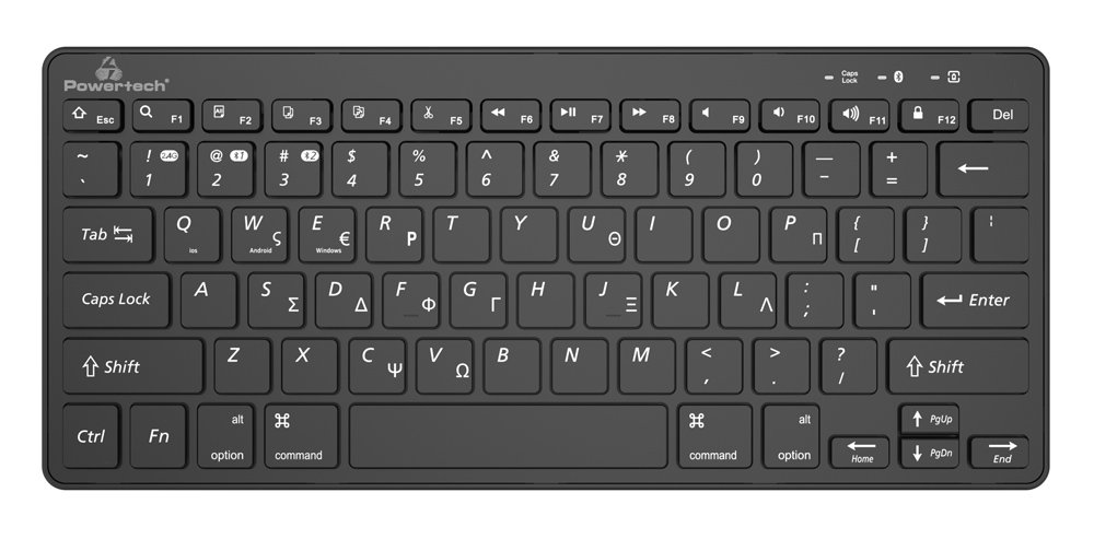 Ασύρματο πληκτρολόγιο της Powertech, ιδανικό για συσκευές όπως desktop, laptop, smartphone και tablet.