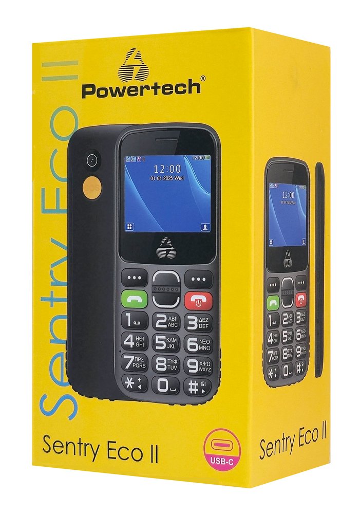POWERTECH κινητό τηλέφωνο Sentry Eco II, 2.31″, dual SIM, με κάμερα, μαύρο