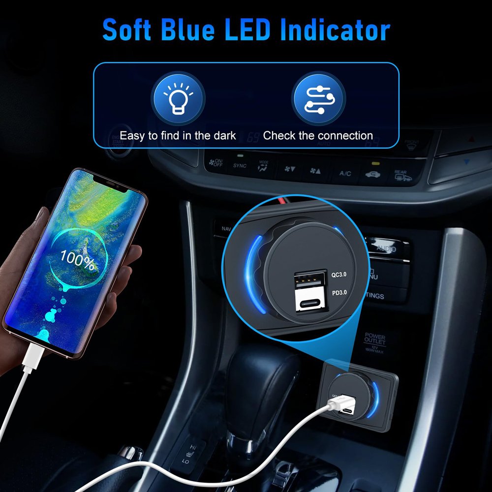 Πρίζα USB της Powertech, κατάλληλη για τοποθέτηση σε σκάφη και οχήματα όπως τροχόσπιτα, τρακτέρ κ.α. Εξοπλίζεται με θύρες φόρτισης USB και USB-C για την φόρτιση συσκευών που φορτίζουν μέσω θύρας USB.