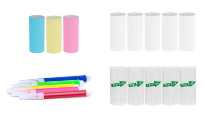 Σετ ανταλλακτικών χαρτιών εκτύπωσης για τον θερμικό εκτυπωτή PT-1420 της POWERTECH. Εκτός από τα ρολά χαρτιών, στη συσκευασία συμπεριλαμβάνονται και μαρκαδόροι.