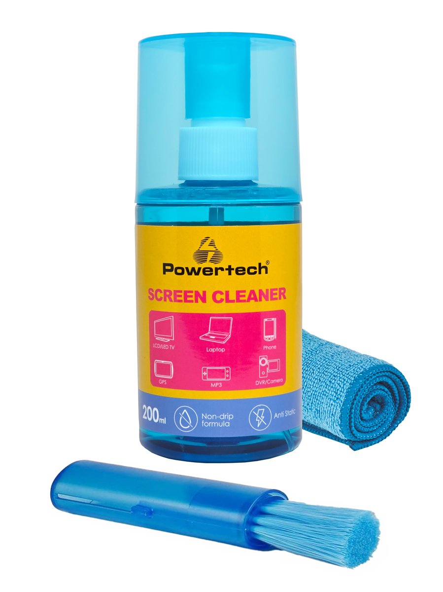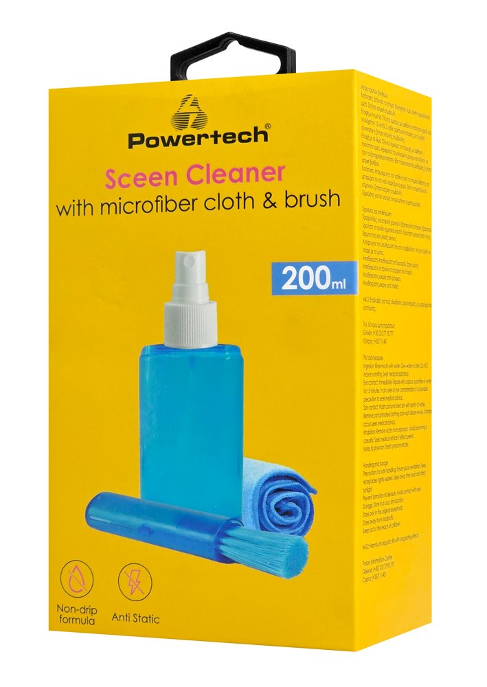 POWERTECH σπρέι καθαρισμού οθόνης PT-1313 με πανί μικροϊνών & βουρτσάκι, 200ml