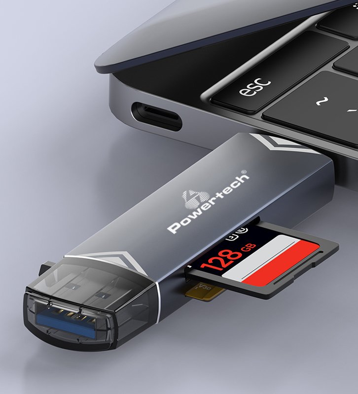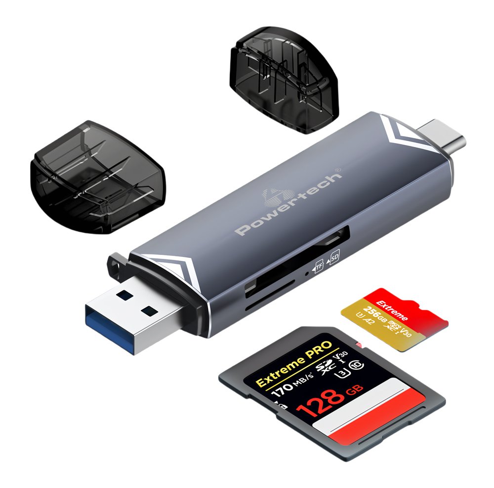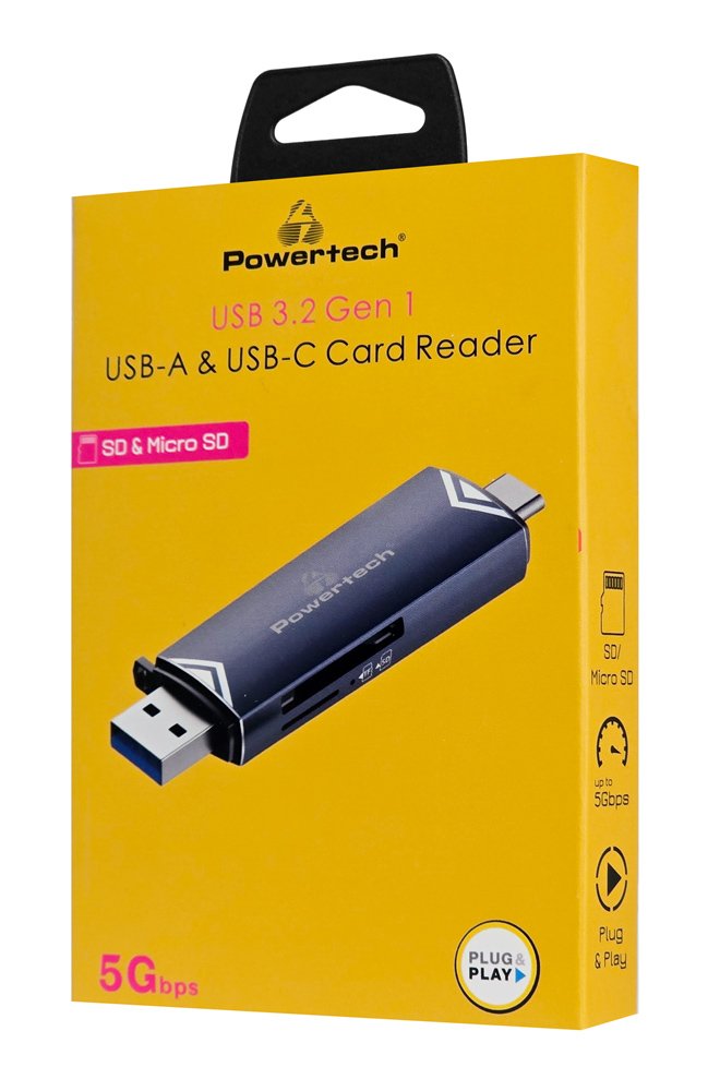 POWERTECH card reader PT-1343 για SD & micro SD, USB 3.2, 5Gbps, γκρι