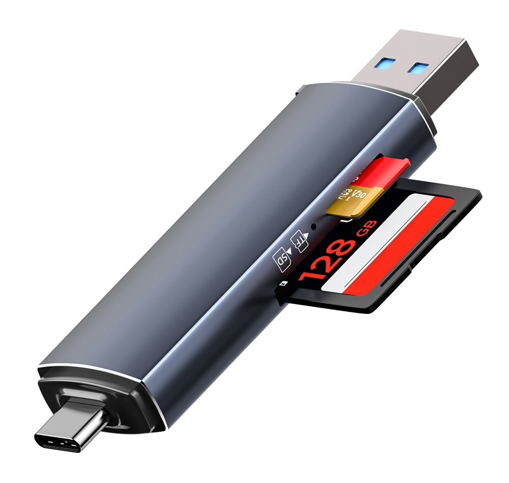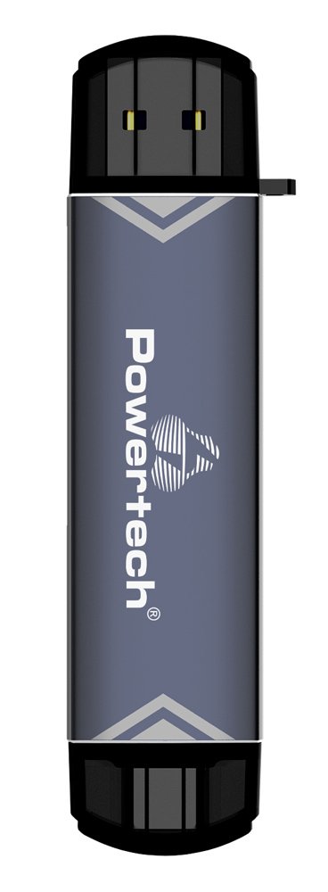 Card reader της Powertech, σε μέγεθος USB flash, με 2 υποδοχές στις οποίες μπορείτε να τοποθετήσετε μια SD και μια micro SD κάρτα μνήμης.