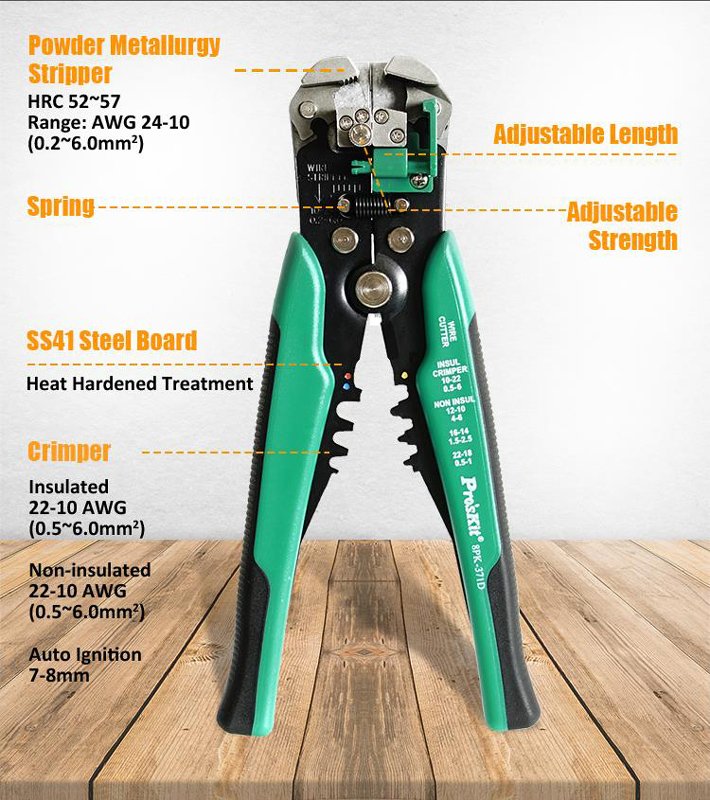 PROSKIT αυτόματη πρέσα ακροδεκτών 8PK-371D με απογυμνωτή, 210mm