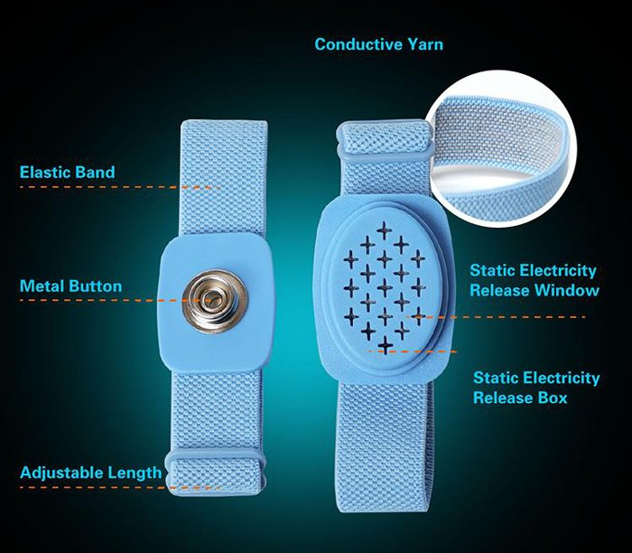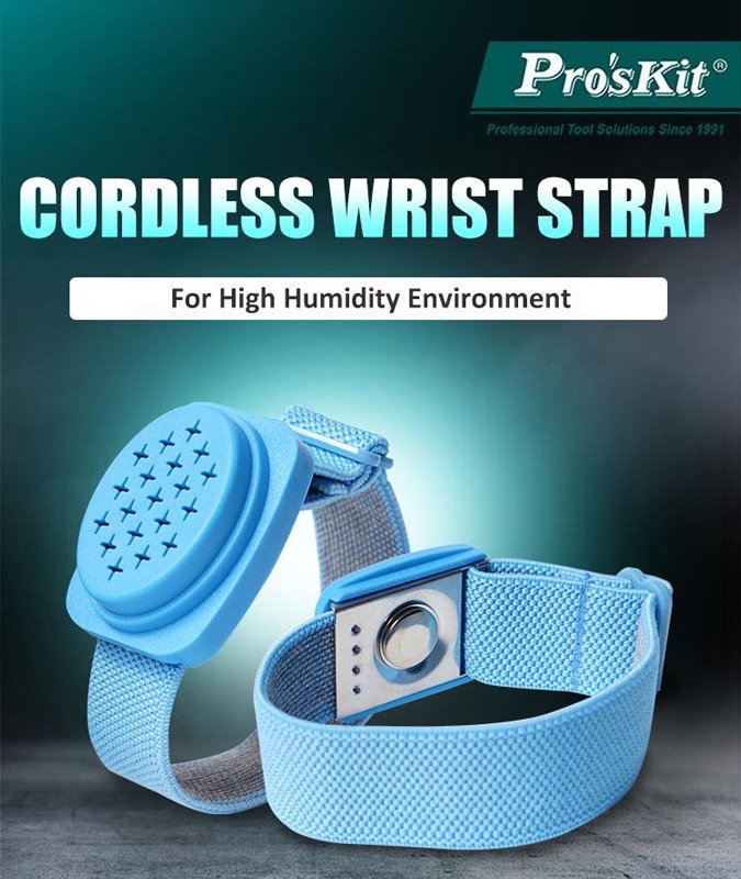 Ηλεκτροστατικό βραχιόλι της PROSKIT κατάλληλο για χρήση σε επισκευές ηλεκτρονικών εξαρτημάτων.