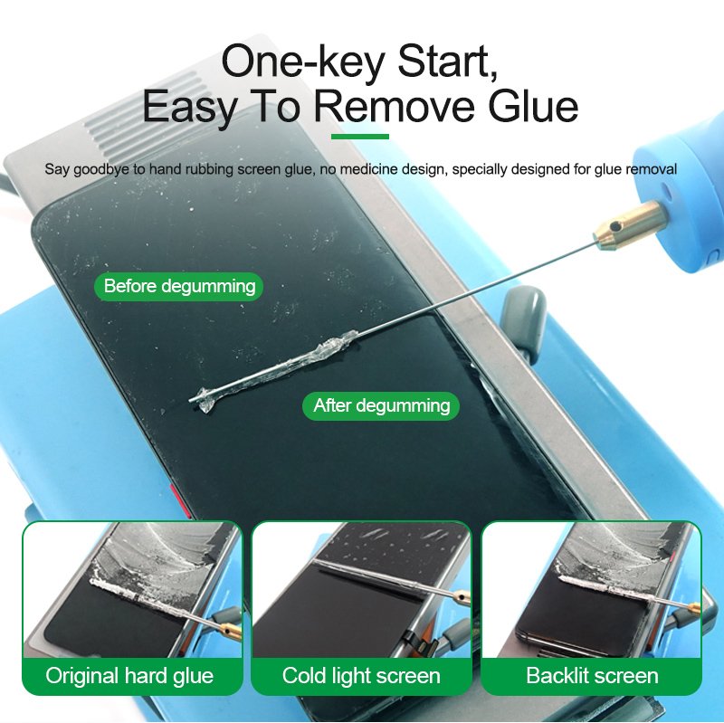 Πολυλειτουργικό εργαλείο για εργασίες επισκευής οθόνης σε smartphone της Relife με εναλλάξιμες κεφαλές, κατάλληλες για διαφορετική εφαρμογή.