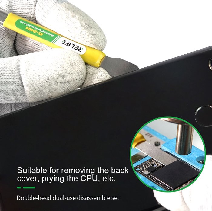 Σετ εργαλείων ανοίγματος με διπλή κεφαλή από την Relife, κατάλληλα για εργασίες επισκευής συσκευών όπως smartphone, tablet και laptop.