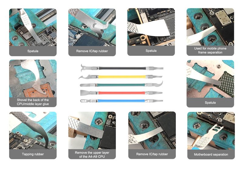 Σετ εργαλείων ανοίγματος με διπλή κεφαλή από την Relife, κατάλληλα για εργασίες όπως αφαίρεση CPU και chip σε επισκευές smartphone.
