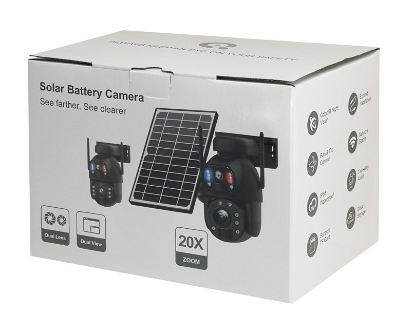 SECTEC smart ηλιακή κάμερα ST-5986M, 3MP dual lens, 20x zoom, 4G, SD, PTZ