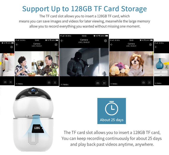 Υψηλής ανάλυσης 2.0ΜP κάμερα ip, Pan & Tilt 355ο & 90ο, υπέρυθρα για νυχτερινή λήψη και WiFi adapter για ασύρματη σύνδεση.Διαθέτει εφαρμογή για το κινητό τηλέφωνο και ηχείο/μικρόφωνο για επίβλεψη του χώρου. Εξοπλίζεται με υποδοχή για SD κάρτα μέχρι 128GΒ, ενώ μπορεί να ανιχνεύσει κίνηση και να ενημερώσει με email τον χρήστη.