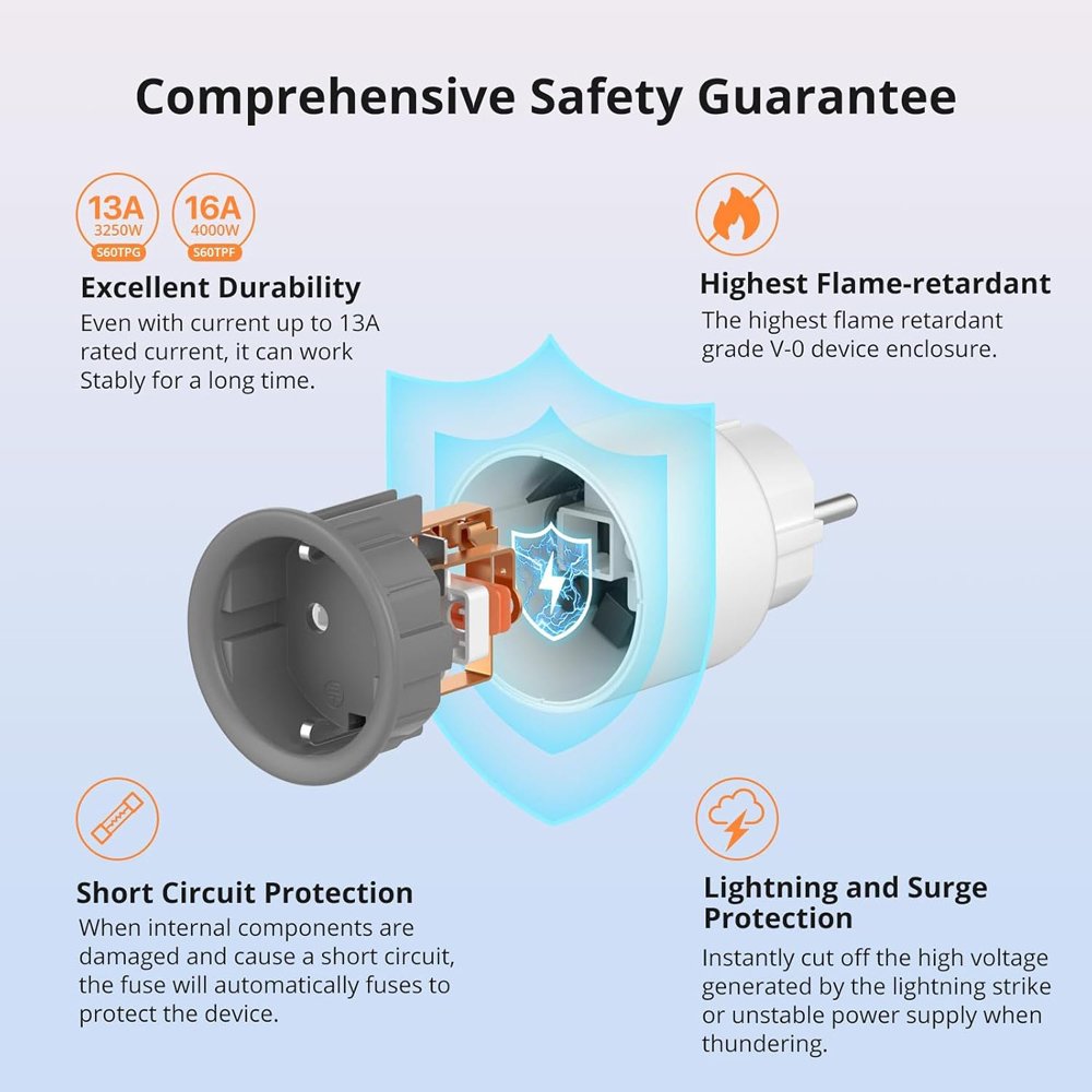SONOFF smart αντάπτορας ρεύματος S60TPF, μονός, 4000W, WiFi, λευκός