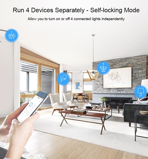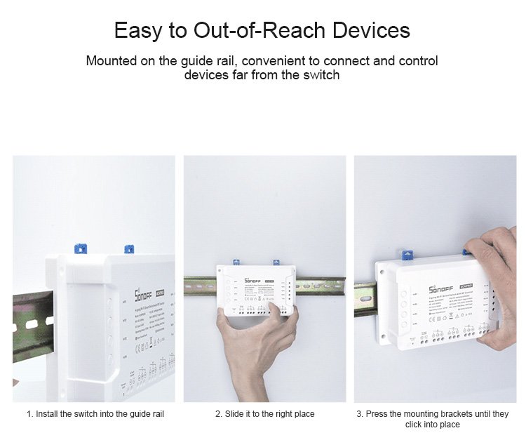 Το Sonoff 4CH R3 είναι ένας ασύρματος WiFi διακόπτης 4 καναλιών ο οποίος μπορεί να ελέγξει τέσσερεις οικιακές ηλεκτρικές συσκευές. Αυτό σημαίνει οτι ενσωματώνει τέσσερις Sonoff Basic διακόπτες! Διαθέτει όλα τα πλεονεκτήματα του Sonoff Basic διακόπτη όπως εύκολη εγκατάσταση και χειρισμός, γρήγορη πρόσβαση WiFi, απομακρυσμένη διαχείριση μέσω εφαρμογής. Οι χρήστες μπορούν να ενεργοποιήσουν/απενεργοποιήσουν από απόσταση τα συνδεδεμένα φώτα/συσκευές από το iOS/Android με την εφαρμογή eWeLink. Μπορούν να δημιουργήσουν ενεργοποιημένους χρονοδιακόπτες μονής/επανάληψης/αντίστροφης μέτρησης για αυτόματη ενεργοποίηση/απενεργοποίηση κατά την καθορισμένη ώρα. Οι χρονομετρητές λειτουργούν ακόμα και όταν το δίκτυο δεν είναι διαθέσιμο. Για να μπορούν οι συσκευές να ελέγχονται από άλλους, οι χρήστες μπορούν απλώς να μοιράσουν τις συσκευές σε άλλους λογαριασμούς και να ενεργοποιήσουν το συγκεκριμένο χρονοδιακόπτη.