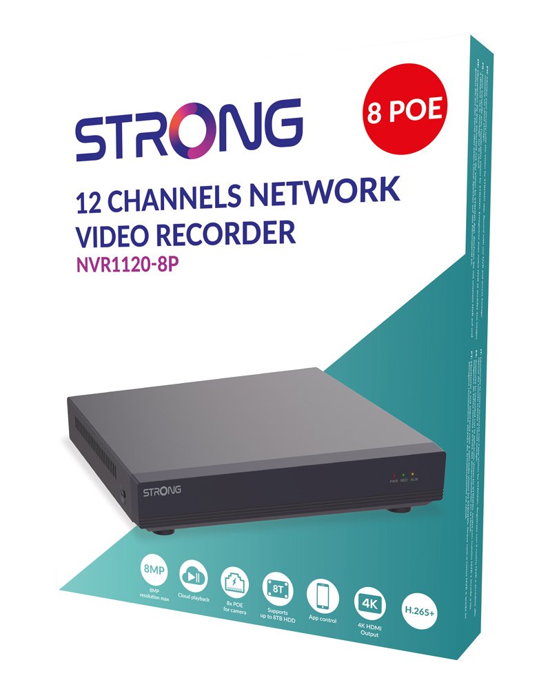 NVR καταγραφικό της STRONG, με υποστήριξη έως 8 PoE καναλιών και ανάλυση καταγραφής έως 4K.
