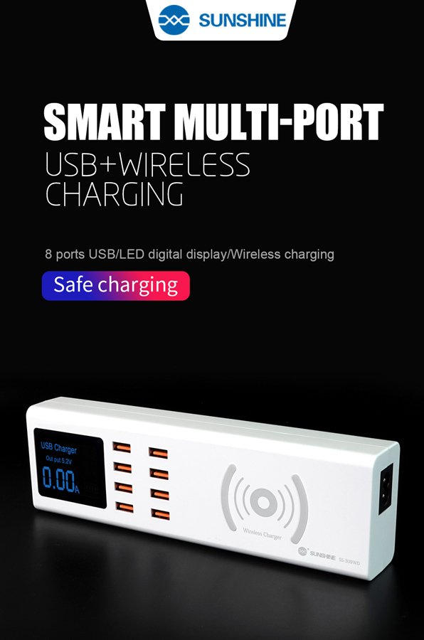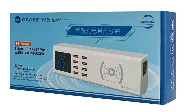 SUNSHINE σταθμός φόρτισης SS-309WD, 8x USB 8A, wireless 10W, λευκός