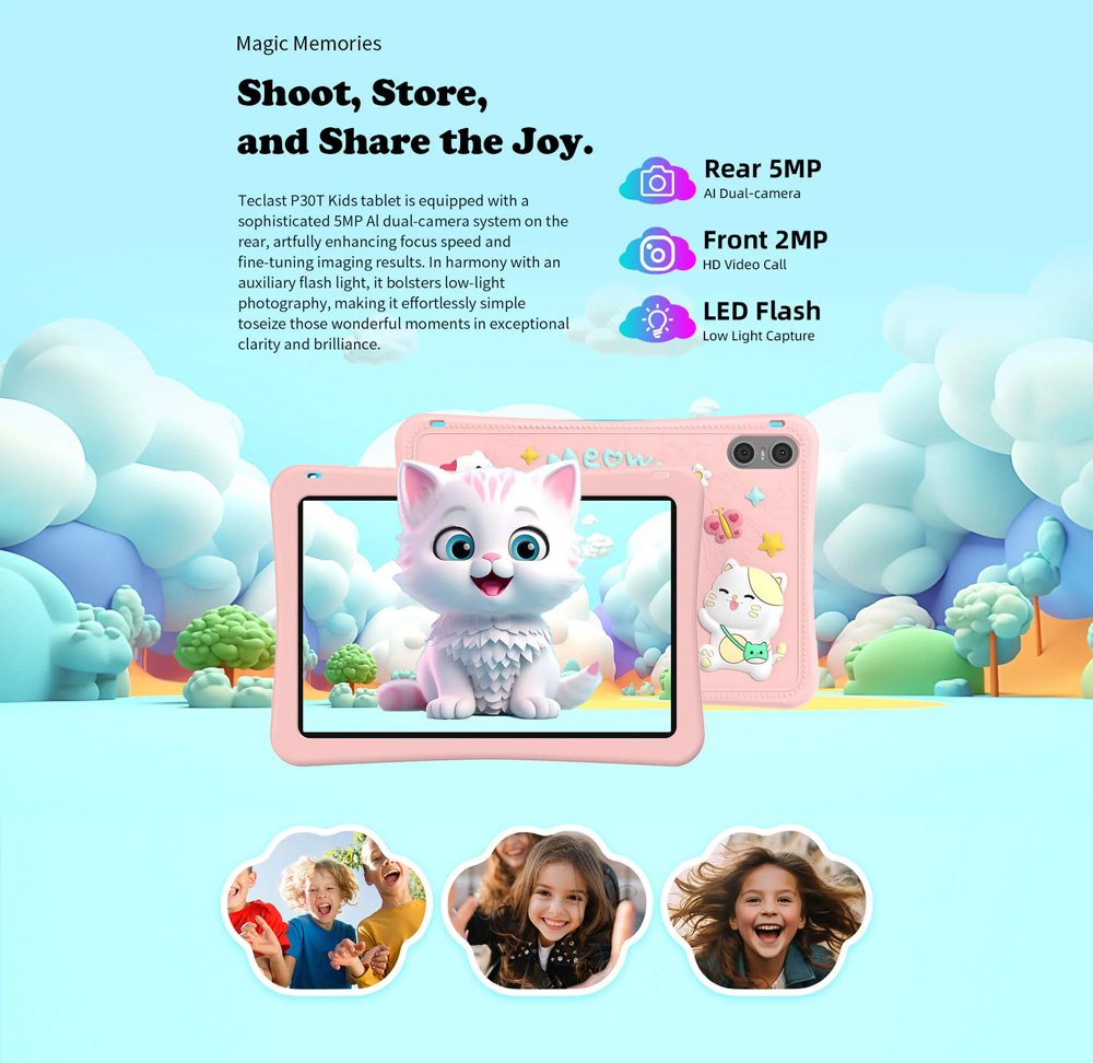 Εξοπλισμένο με επεξεργαστή 8 πυρήνων και λειτουργικό Android 14, το P30T Kids προσφέρει υψηλή απόδοση για απρόσκοπτη παρακολούθηση βίντεο, παιχνίδια και εκπαιδευτικές εφαρμογές.