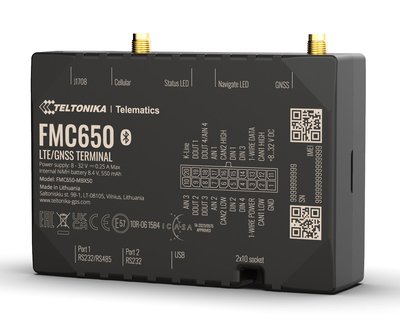 Το GPS tracker FMC650 είναι μια συσκευή, σχεδιασμένη για τον εντοπισμό οχημάτων όπως αυτοκίνητα, φορτηγά, van, κ.α. Υποστηρίζει δίκτυο 4G, σύνδεση Bluetooth, έχει εξωτερικές κεραίες GNSS μεγάλης εμβέλειας και επίσης διαθέτει εσωτερική εφεδρική μπαταρία.