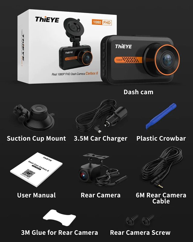 THIEYE κάμερα αυτοκινήτου Carbox 6R, μπροστινή & οπίσθια, 3″ LCD, 1080p