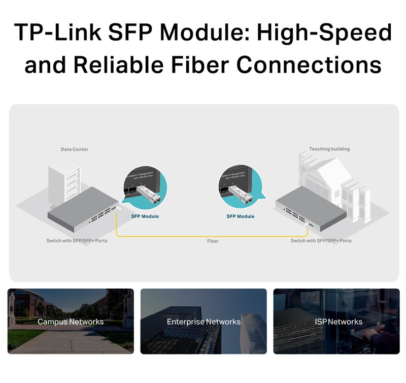 Οι Fiber Module κάρτες της σειράς TL-SM311 χρησιμοποιούνται για την επέκταση της απόστασης του δικτύου LAN. Με την τοποθέτηση τους σε managed/smart switches της TP-LINK μπορούν να επεκτείνουν την απόσταση της σύνδεσης LAN για έως και δεκάδες χιλιόμετρα ικανοποιώντας της απαιτήσεις του δικτύου σας.