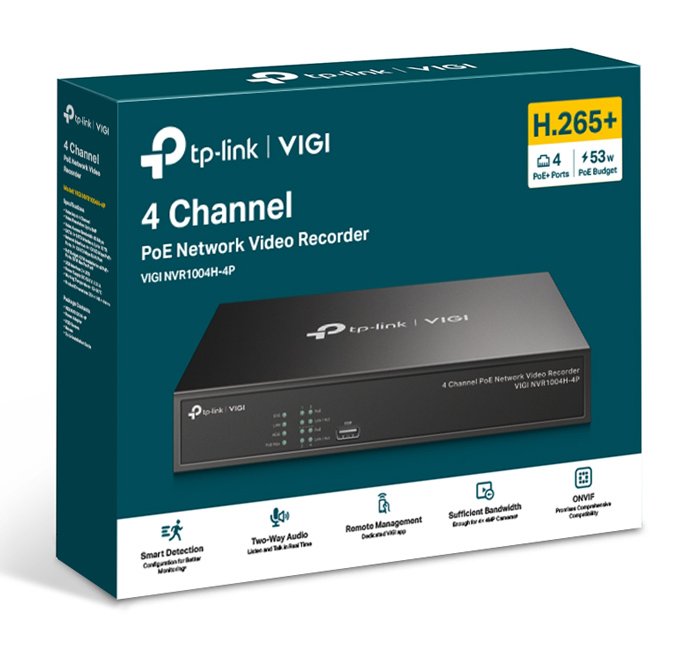 TP-LINK NVR καταγραφικό VIGI NVR1004H-4P, 8MP, 4 κανάλια PoE, Ver. 1.0