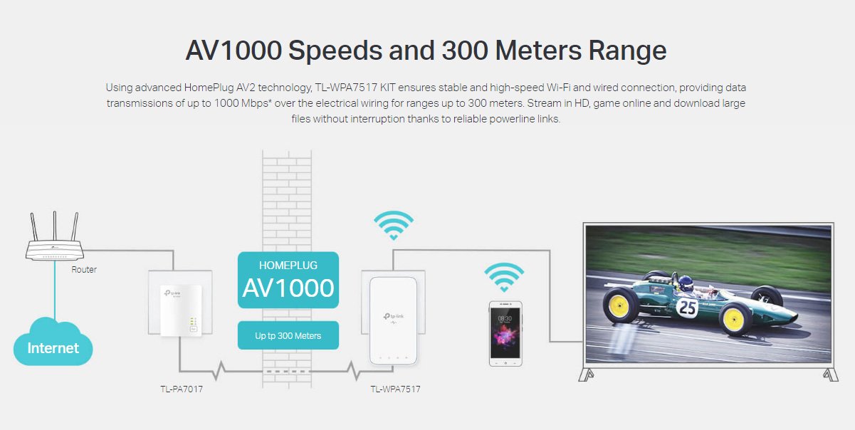 AV1000 Powerline Wi-Fi Kit: TL-WPA7517 & TL-PA7017