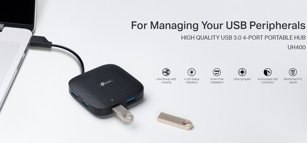 TP-LINK USB hub UH400, 4x θυρών, 5Gbps, USB σύνδεση, μαύρο, Ver. 3.0