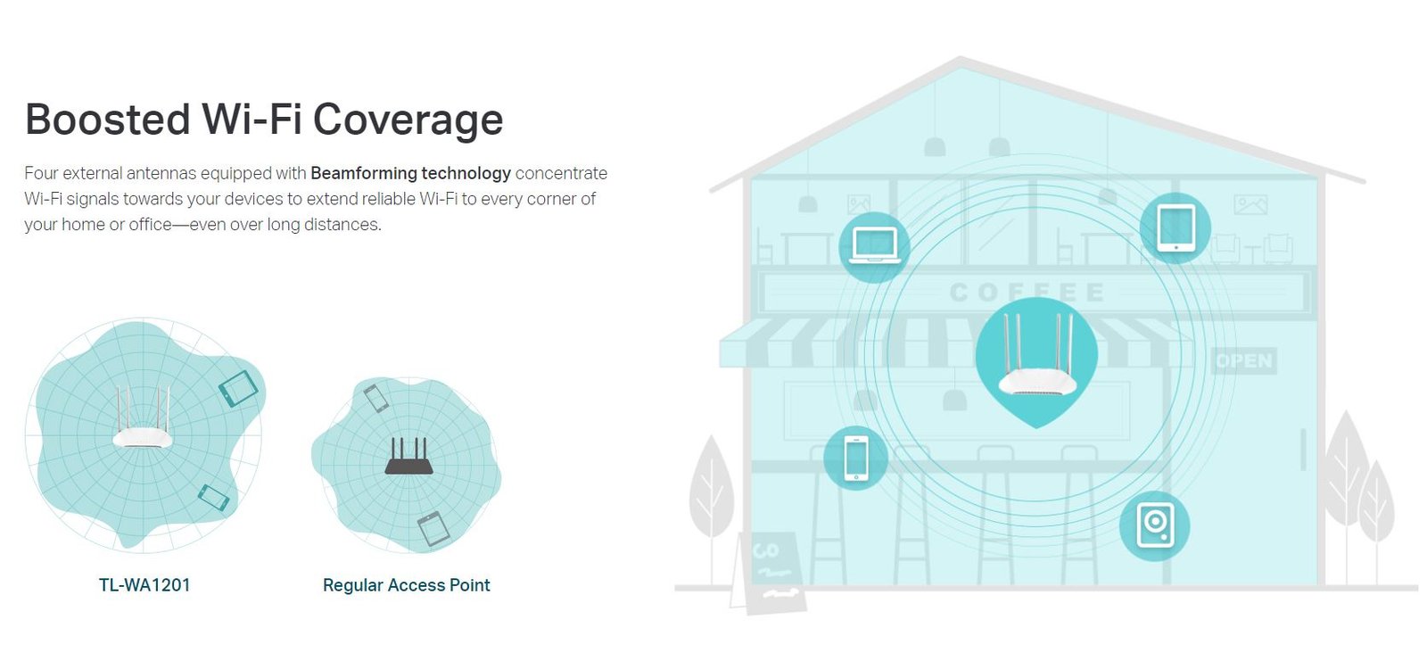 Το TL-WA1201 είναι ένα πολυχρηστικό access point κατάλληλο για την δικτύωση σπιτιών και μικρών επιχειρήσεων. Με πολλαπλές κεραίες και Dual Band Wi-Fi παρέχει εξαιρετικές ταχύτητες και δυνατό σήμα ακόμη και σε δυσπρόσιτα σημεία του χώρου. Υποστηρίζει συχνότητες 5GHZ και 2.4GHZ με ταχύτητες μέχρι και 867 Mbps και 300 Mbps αντίστοιχα. Η τεχνολογία MU-MIMO δίνει την δυνατότητα στο access point να διαμοιράζει το σήμα ταυτόχρονα σε πολλές συσκευές χωρίς καθυστερήσεις ενώ η θύρα Gigabit επιτρέπει σε διασύνδεση με υψηλές ταχύτητες. Το access point μπορεί να λειτουργήσει και με πολλαπλές επιπλέον λειτουργίες όπως range entender mode, client mode και Multi-SSID mode. Υποστηριζεται η τεχνολογία PoE η οποία μπορεί να τροφοδοτήσει το access point με το απαραίτητο ρεύμα μέσω του ethernet καλωδίου σύνδεσης, περιορίζοντας έτσι τα καλώδια κατά την τοποθέτηση. Το λογισμικό Captive Portal Marketing επιτρέπει στον ειδικό σχεδιασμό σελίδας για την είσοδο των “guests” στο δίκτυο της επιχείρησης, παρέχοντας την δυνατότητα για διαφήμιση ή ενημέρωση τους μέσω αυτού. Η τεχνολογία Beamforming εξασφαλίζει ότι θα δίνετε δυνατό σήμα ακριβώς στην περιοχή που χρειάζεται περισσότερο κατά μήκος του χώρου.