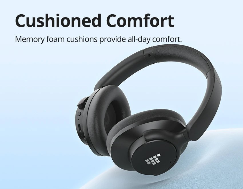 Χάρη στον σχεδιασμό τους, τα μαλακά μαξιλαράκια από memory foam των ακουστικών και το μαλακό pad στο στεφάνι, εφαρμόζουν άψογα και προσφέρουν άνεση ακόμη και μετά από πολλές ώρες χρήσης.