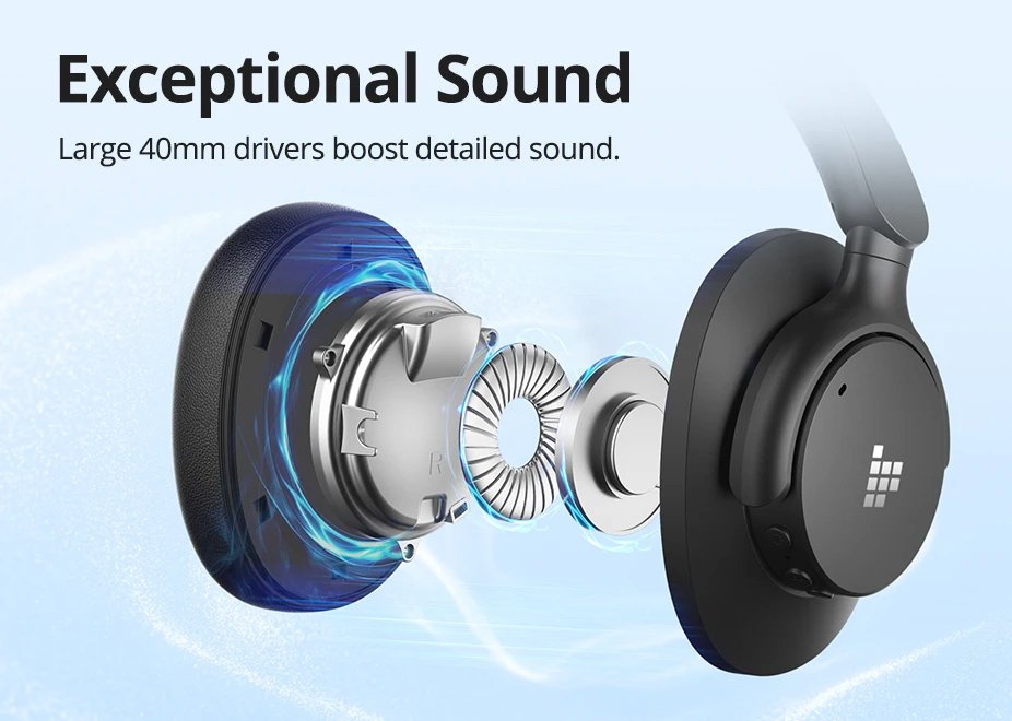 Διαθέτουν οδηγούς των 40mm που προσφέρουν ποιοτικό και πλούσιο ήχο για να απολαύσετε την αγαπημένη σας μουσική χωρίς περιορισμούς.