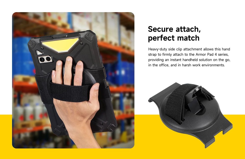 Βάση για τα tablet της σειράς Armor Pad 4 από την Ulefone. Διαθέτει ιμάντα χεριού για άνετο και ασφαλές κράτημα του tablet με το ένα χέρι.