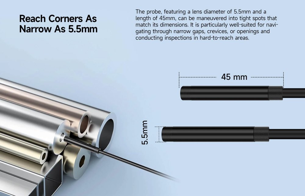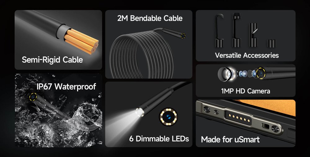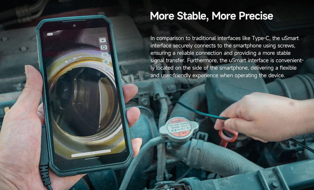 Ενδοσκοπική κάμερα, κατάλληλη για smartphone με uSmart βύσμα επέκτασης της ULEFONE. Είναι εξαιρετική για προβολή εικόνας σε μέρη που είναι δύσκολα προσβάσιμα, όπως για παράδειγμα εντός σωληνώσεων, συστημάτων εξαερισμού κλπ.
