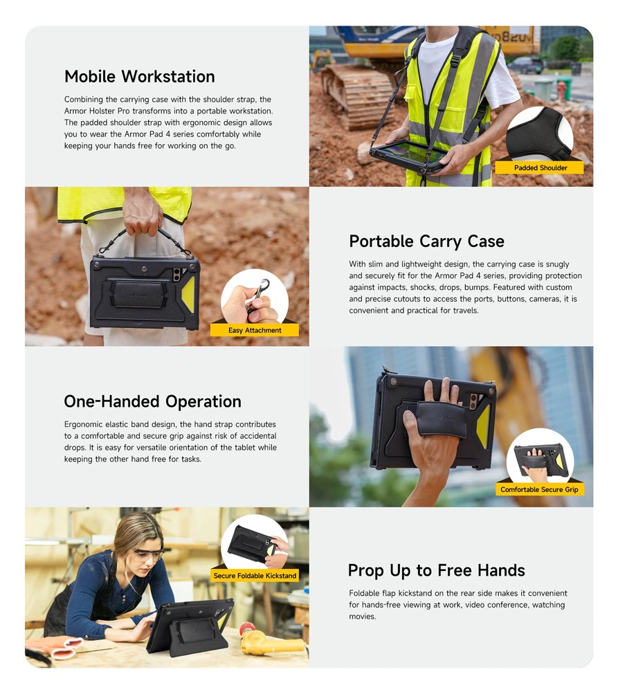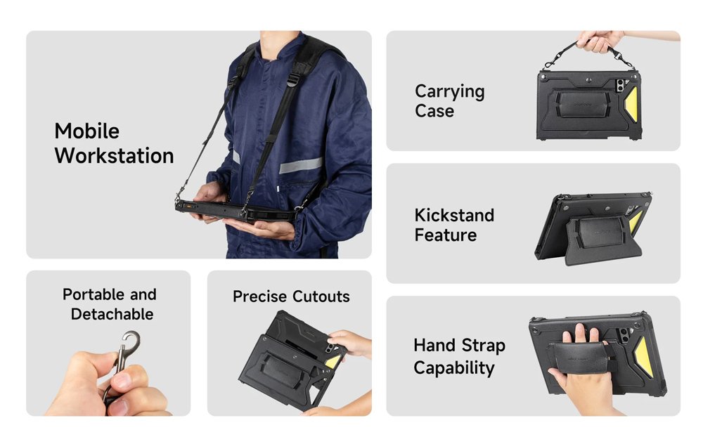 Επιπλέον, εξοπλίζεται με αποσπωμένους ιμάντες πλάτης και χειρός που μεγιστοποιούν την ευκολία μεταφοράς και χρήσης του tablet.