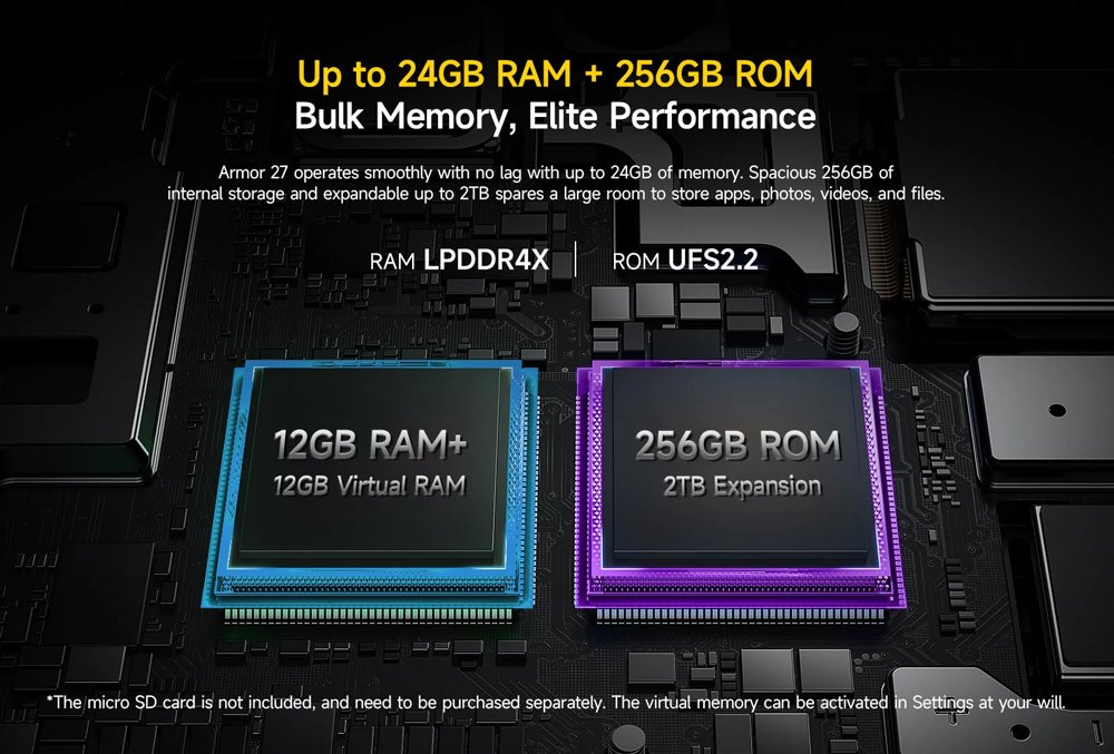 ULEFONE smartphone Armor 27, 6.78″, 12/256GB, 10600mAh, IP68/IP69K, μαύρο